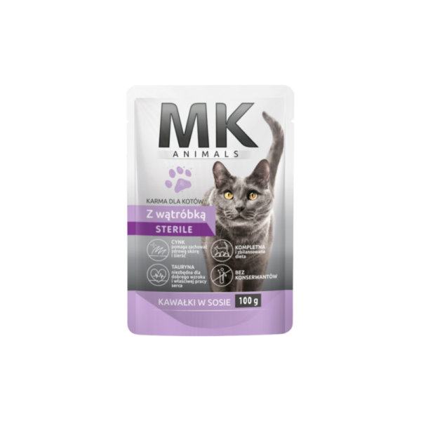 MK Animals Premium Wątróbka Sterile 100g (Saszetka).Karma pełnoporcjowa z wątróbką która jest bogatym źródłem ważnych składników odżywczych dla zdrowia kota. Podczas spożywania tej karmy, twoje zwierzę będzie czerpało korzyści z zawartości kwasu tłuszczowego omega-3, białka, witamin i minerałów, które wspierają prawidłowe funkcjonowanie organizmu.